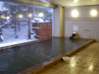 ヒラフゲレンデ横の天然温泉「ぽぽろの湯」コンクリート造りの近代型温泉。ここも羊蹄山が目の前に広がります。